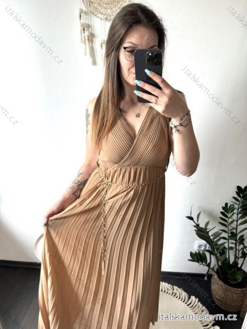 ZBOŽÍ (23737) > oblečenie dámske (18907) > šaty (10183) > Šaty dlhé elegantné letné šifónové bez rukávov dámske (S/M ONE SIZE) TALIANSKA MÓDA IMD22324/DR světle hnědá