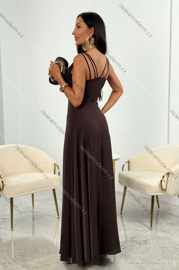 Šaty dlhé elegantné na ramienka dámske nadrozmer (32-42) POLSKÁ MÓDA PMLEL025MARINA hneda čokoládová 36