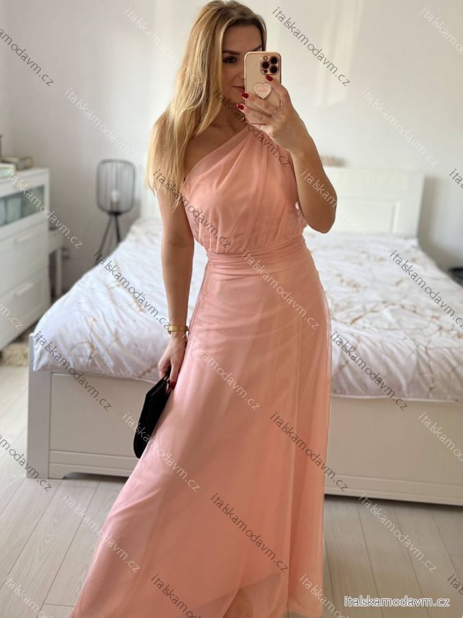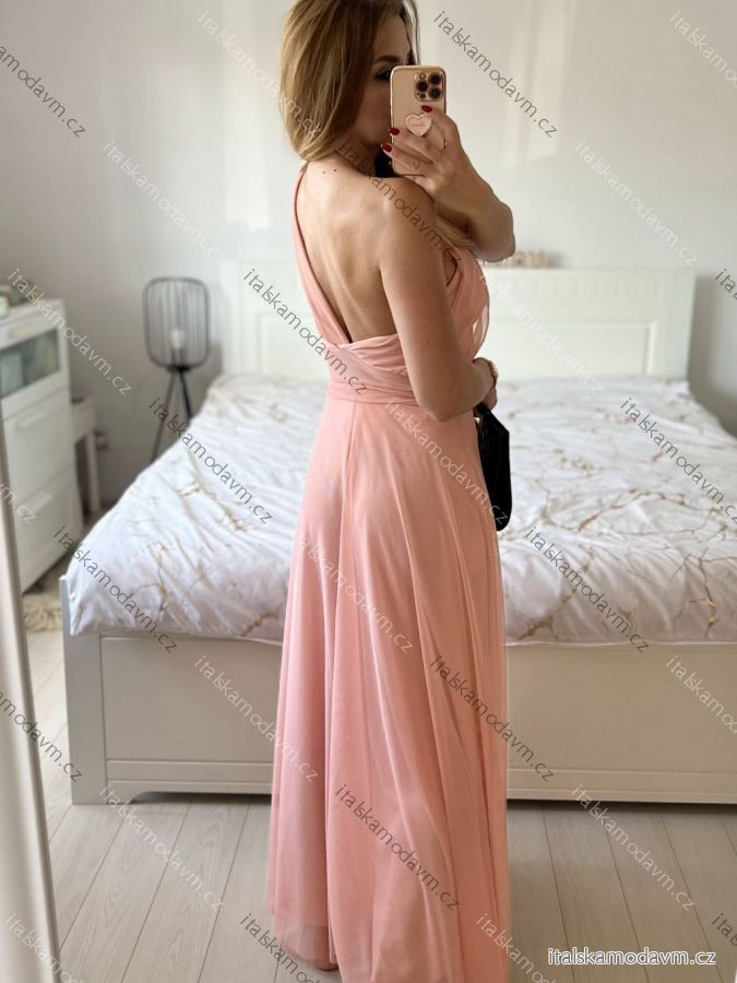 Šaty dlhé elegantné spoločenské bez rukávov dámske (S/M ONE SIZE) TALIANSKA MÓDA IMPSH223623/DUR sv. růžová S/M