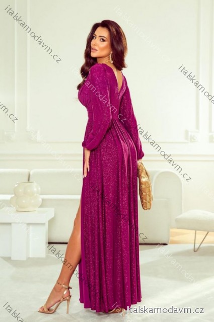 Šaty dlhé elegantné trblietavé dlhý rukáv dámske nadrozmer (34-50) POLSKÁ MÓDA PMLWD24RAMONA tmavo ružová 42