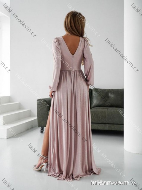 Šaty dlhé elegantné trblietavé dlhý rukáv dámske nadrozmer (34-50) POLSKÁ MÓDA PMLWD24RAMONA4 béžová smotanová 38