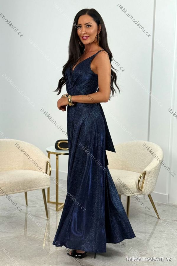 Šaty dlhé elegantné trblietavé na ramienka dámske (32-42) POLSKÁ MÓDA PMLEL250MARINA4 tmavo modrá