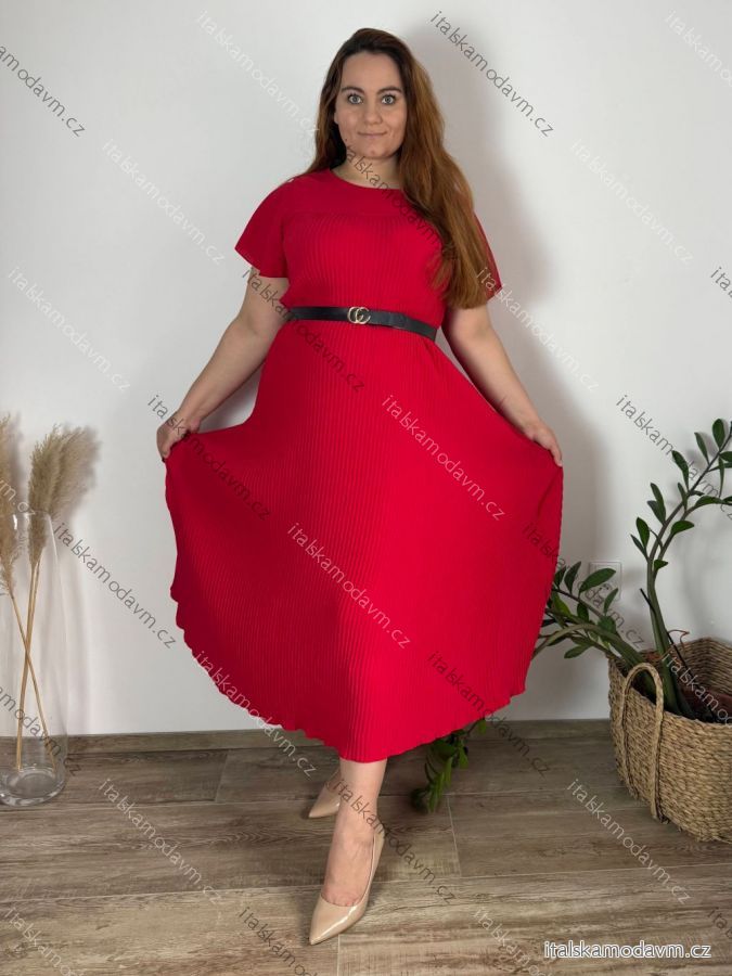 Šaty dlhé elegantní plisované krátky rukáv dámske nadrozmer (54/56/58 ONE SIZE) TALIANSKA MÓDA IM425AMOR/DR světle růžová 54/56/58