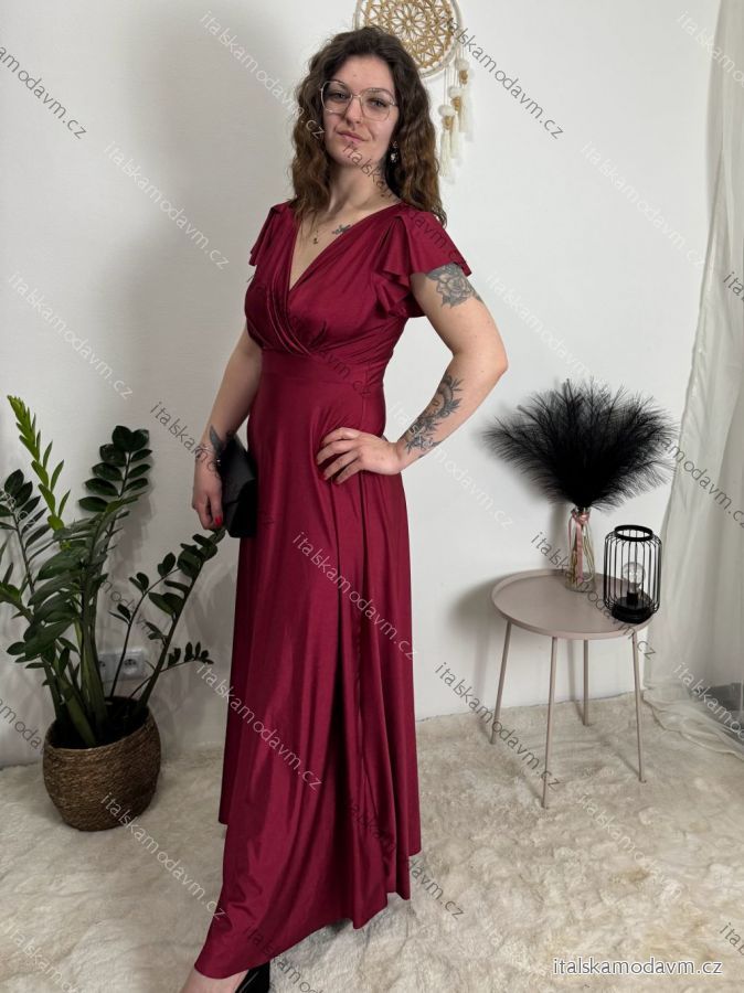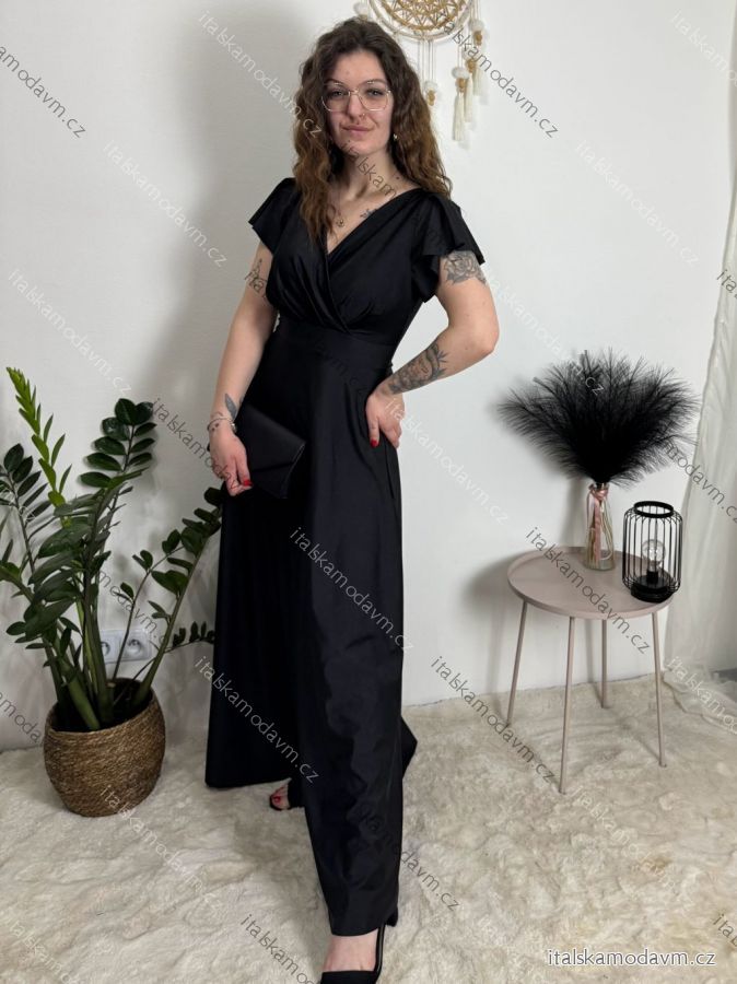 ZBOŽÍ (22013) > Šaty dlhé elegantný krátky rukáv dámske ANNA (S/M/L ONE SIZE) TALIANSKA MÓDA IM4260024/DUR černá S/M/L