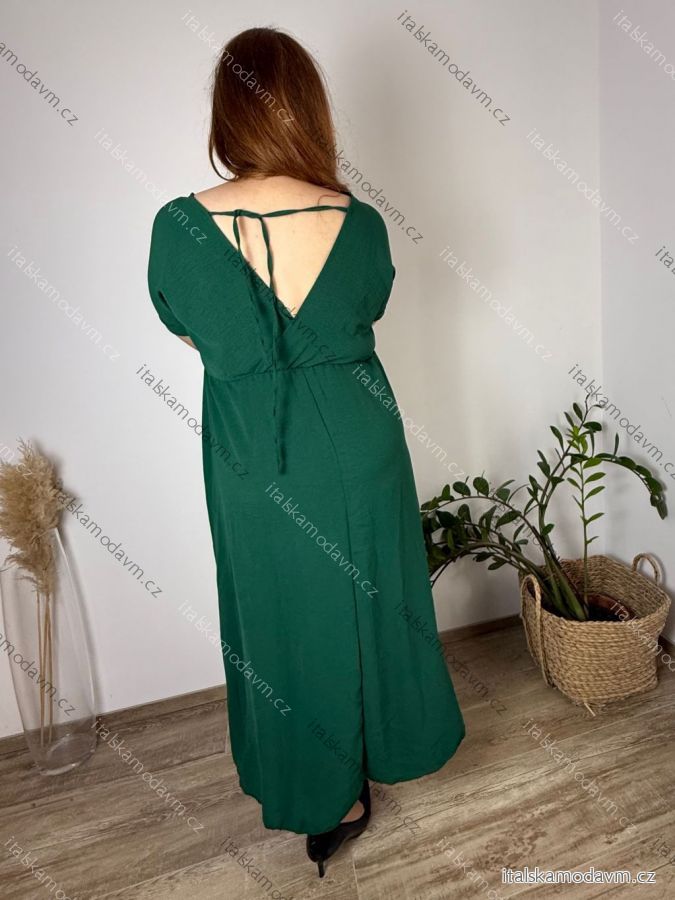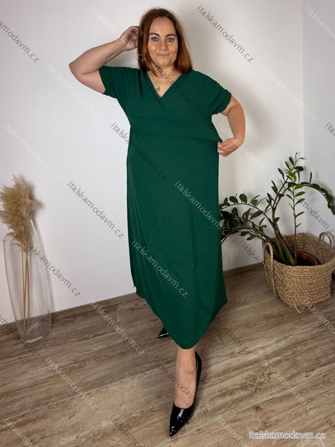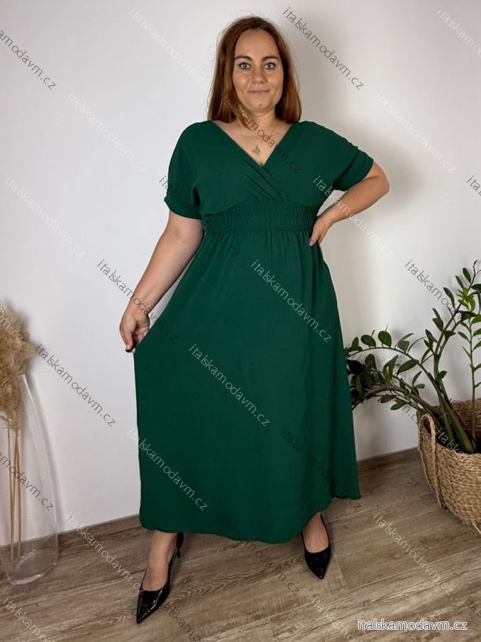 Šaty dlhé elegantný letný krátky rukáv dámske nadrozmer ASTRA (42/44/46 ONE SIZE) TALIANSKA MÓDA IM425422/DUR tmavo smaragdová