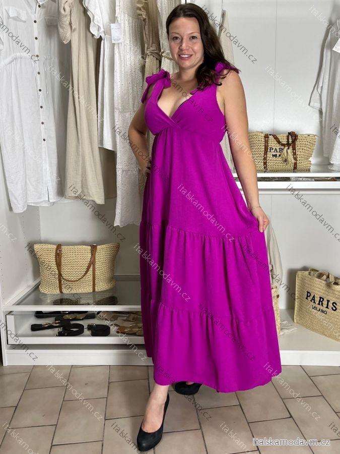 Šaty dlhé letné bez rukávu dámske RICKY (M/L/XL ONE SIZE) TALIANSKA MÓDA IMD252534/DU M/L/XL růžová fuchsiová