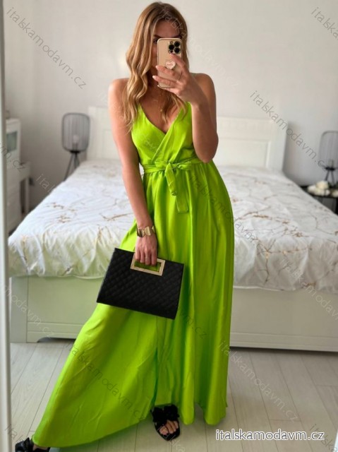 ZBOŽÍ (22167) > oblečenie dámske (18403) > šaty (9751) > Šaty dlhé letné saténové s opaskom na ramienka dámske (S/M ONE SIZE) TALIANSKA MÓDA IMM22INFINITE/DUR - zelená limetková - S / M