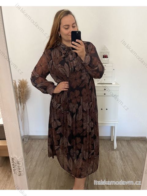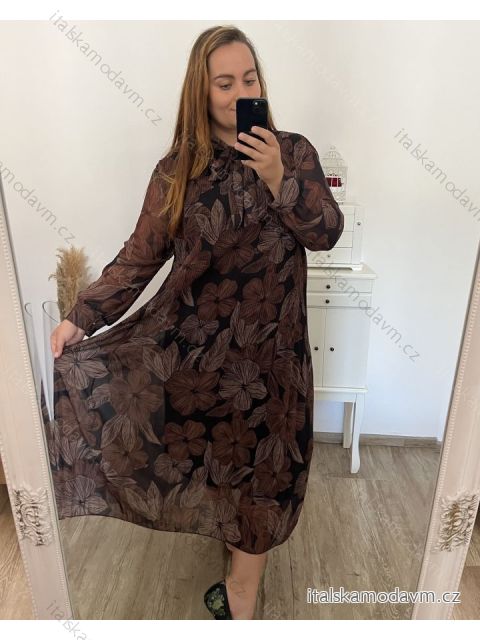 Šaty dlhé šifónové dlhý rukáv dámske nadrozmer (3XL/4XL ONE SIZE) TALIANSKA MÓDA IMWEC23ITALY/DU 3XL / 4XL hnedá