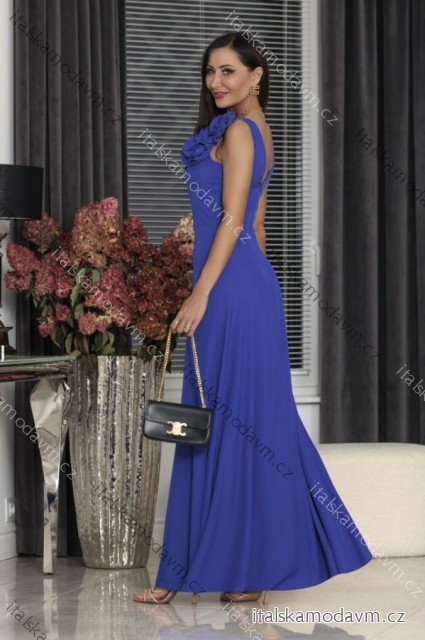 Šaty dlhé spoločenské na ramienka dámske nadrozmer (34-48) POLSKÁ MÓDA PMLEL24ANABEL4 modrá kráľovská 40