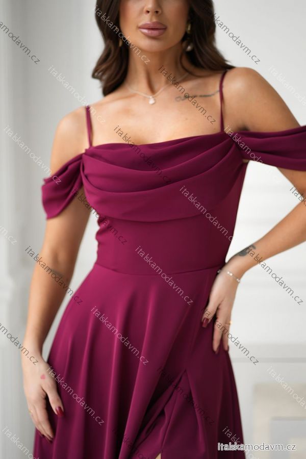 Šaty dlhé spoločenské na ramienka dámske (34-48) POLSKÁ MÓDA PMLBC24320-10 44 vínová třešňová