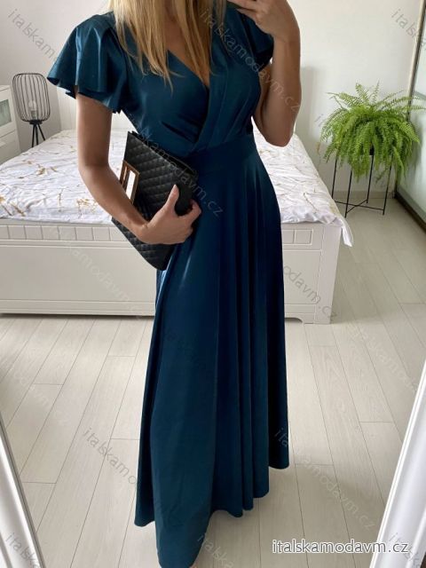 Šaty dlhé spoločenské krátky rukáv dámske (S/M ONE SIZE) TALIANSKA MODA IM323125/DU S/M petrolejová