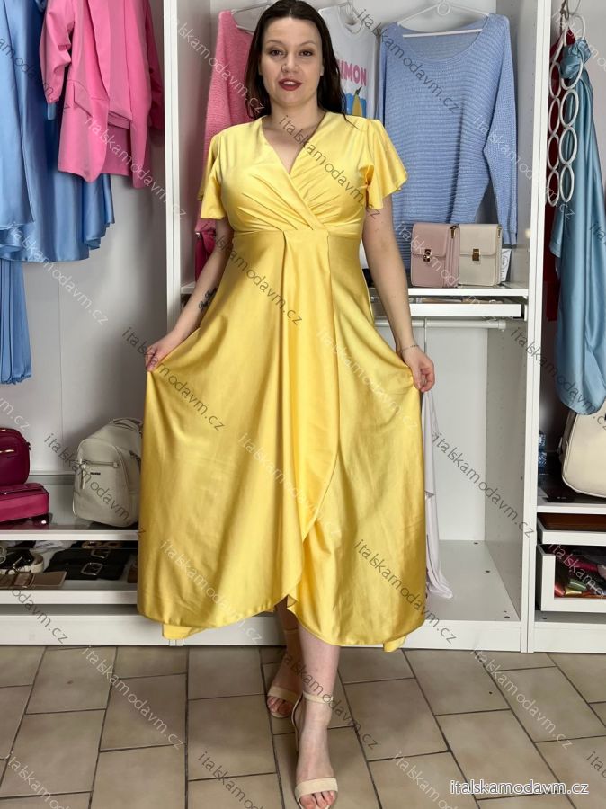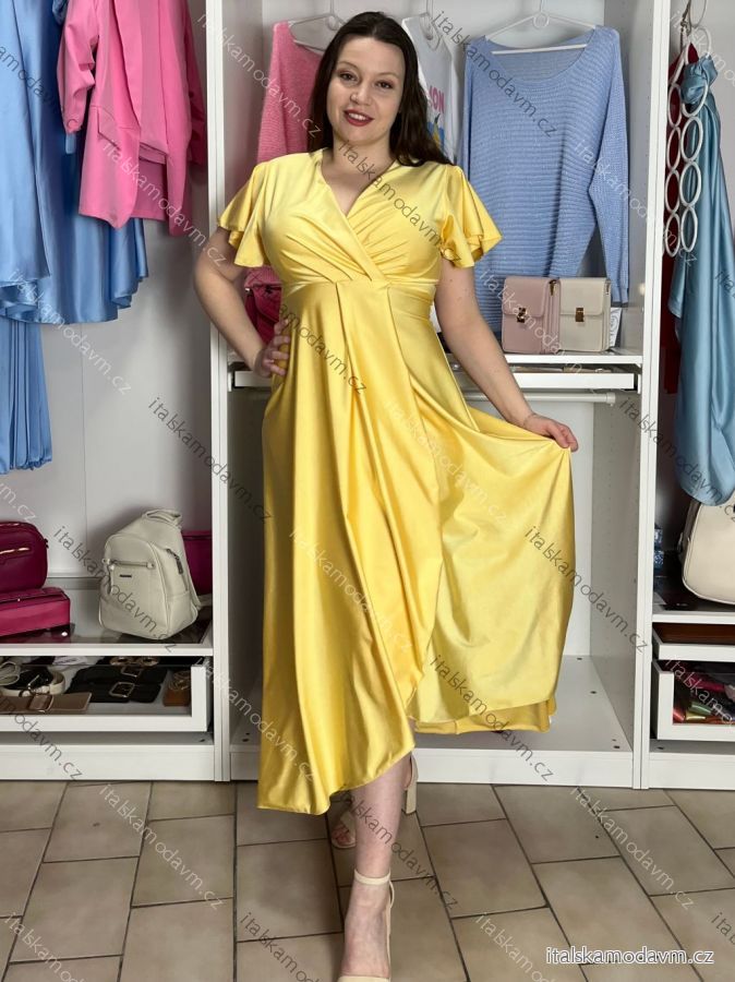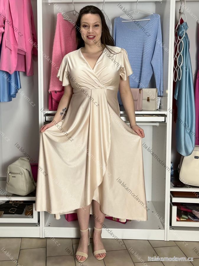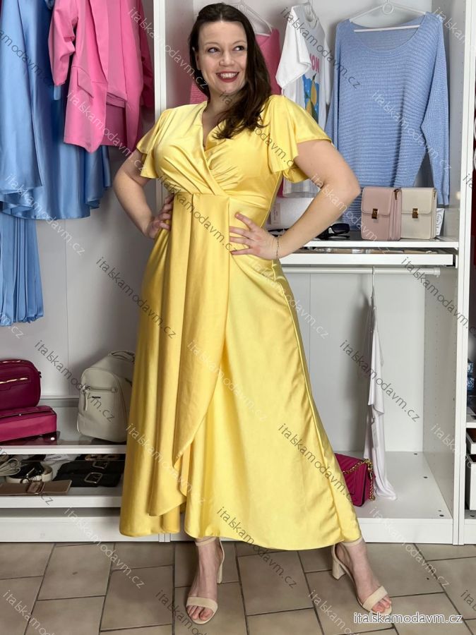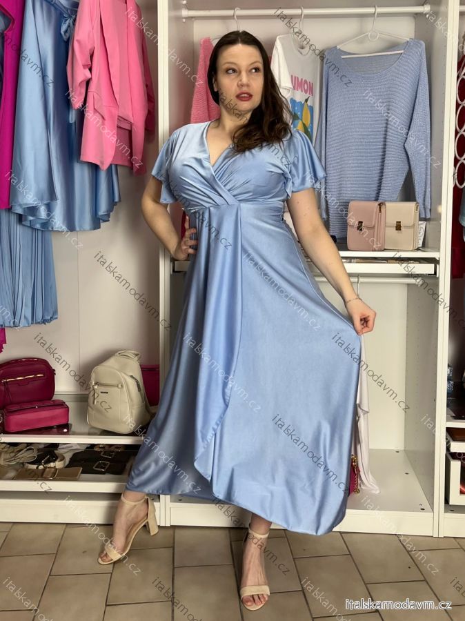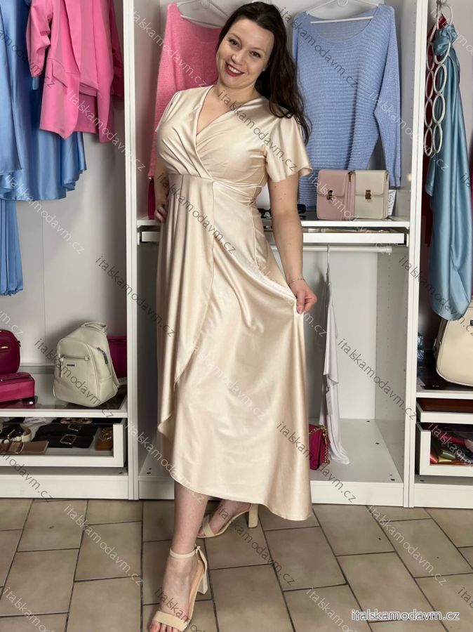 ZBOŽÍ (22026) > Šaty dlhé spoločenské saténové krátky rukáv dámske ADINA (38/40/42 ONE SIZE) TALIANSKA MÓDA IM425896/DUR zelená lipová 38/40/42