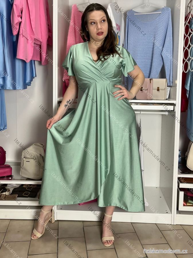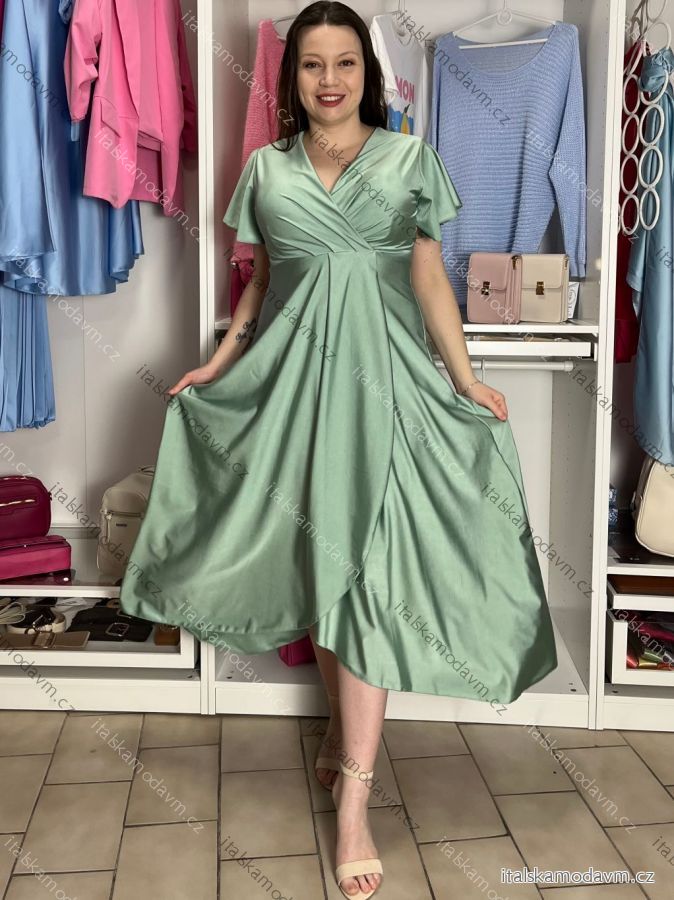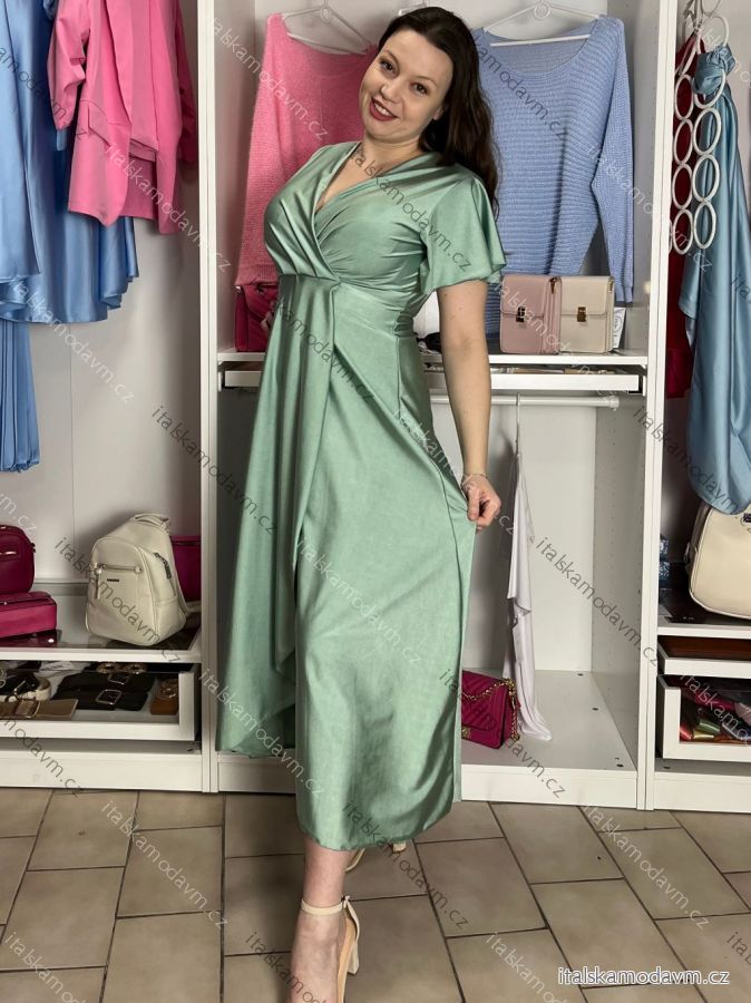 Šaty dlhé spoločenské saténové krátky rukáv dámske ADINA (38/40/42 ONE SIZE) TALIANSKA MÓDA IM425896/DUR zelená lipová 38/40/42