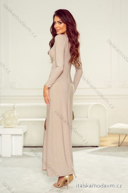 Šaty dlhé spoločenské trblietavé dlhý rukáv dámske nadrozmer (34-48) POLSKÁ MÓDA PMLWD24LIVIA-1 béžová 40