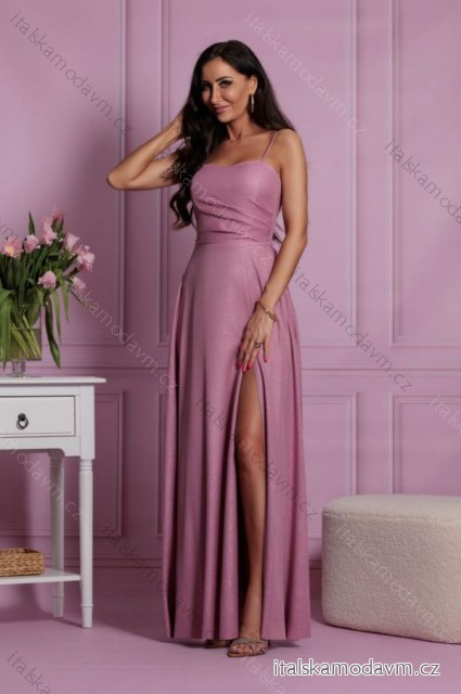 Šaty dlhé spoločenské trblietavé na ramienka dámske (34-42) POLSKÁ MÓDA PMLEL24NATHALIEB7 ružová 40