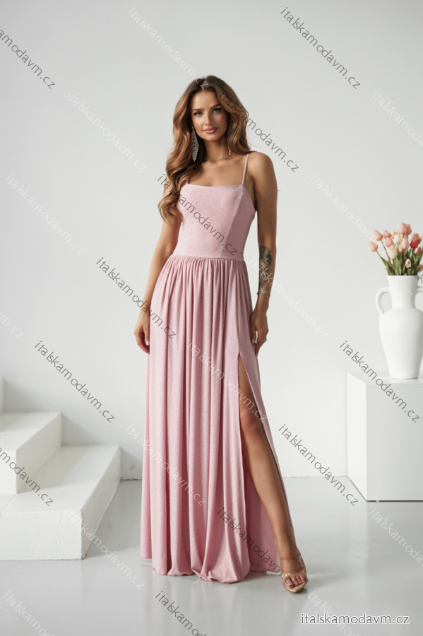 Šaty dlhé spoločenské trblietavé na ramienka dámske (34-38) POLSKÁ MÓDA PMLWD25AMELIA ružová staroružová 34