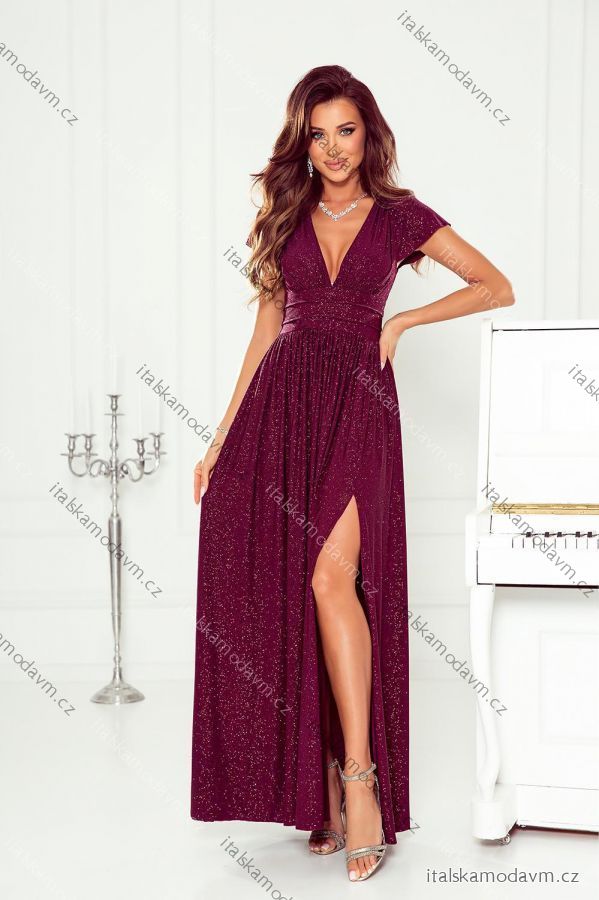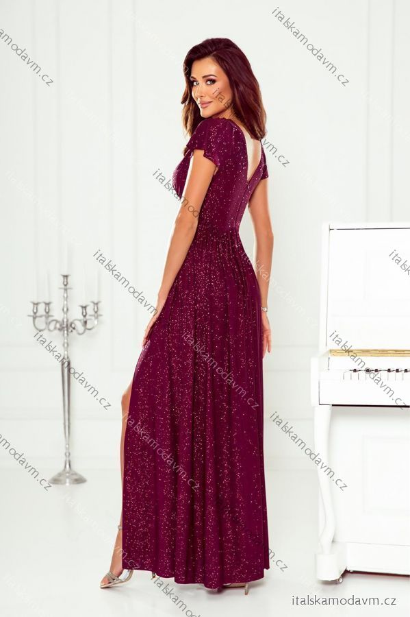 Šaty dlhé spoločenské trblietavé s flitrami krátky rukáv dámske nadrozmer (34-50) POLSKÁ MÓDA PMLWD24GABRIELA8/DR vínová 46