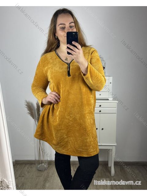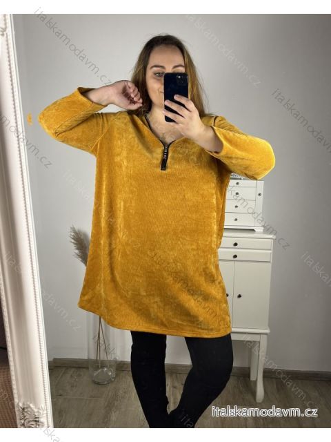 Šaty dlhý rukáv dámske nadrozmer (3XL/4XL/5XL ONE SIZE) TALIANSKA MÓDA IM423KATA/DU Farba horčicová Veľkosť 4XL/5XL