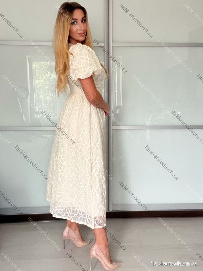 Šaty dlouhé elegantní letní krátký rukáv dámské SIREINA (S/M/L ONE SIZE) ITALSKÁ MÓDA IMPOC256565/DUR S/M/L béžová