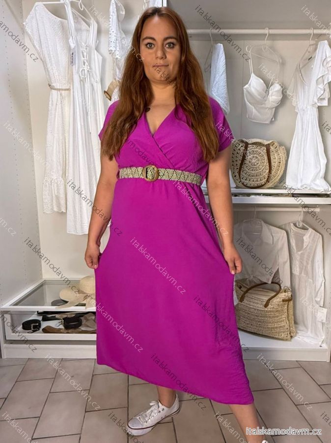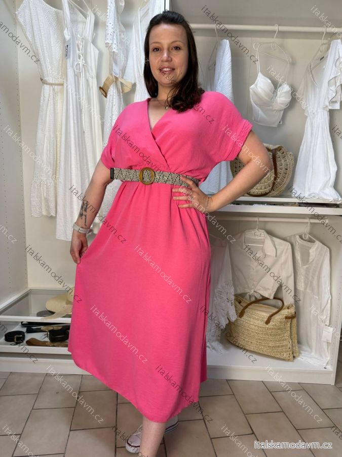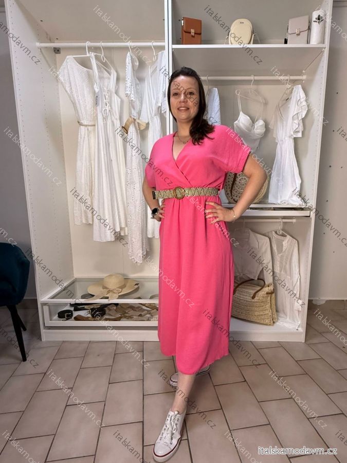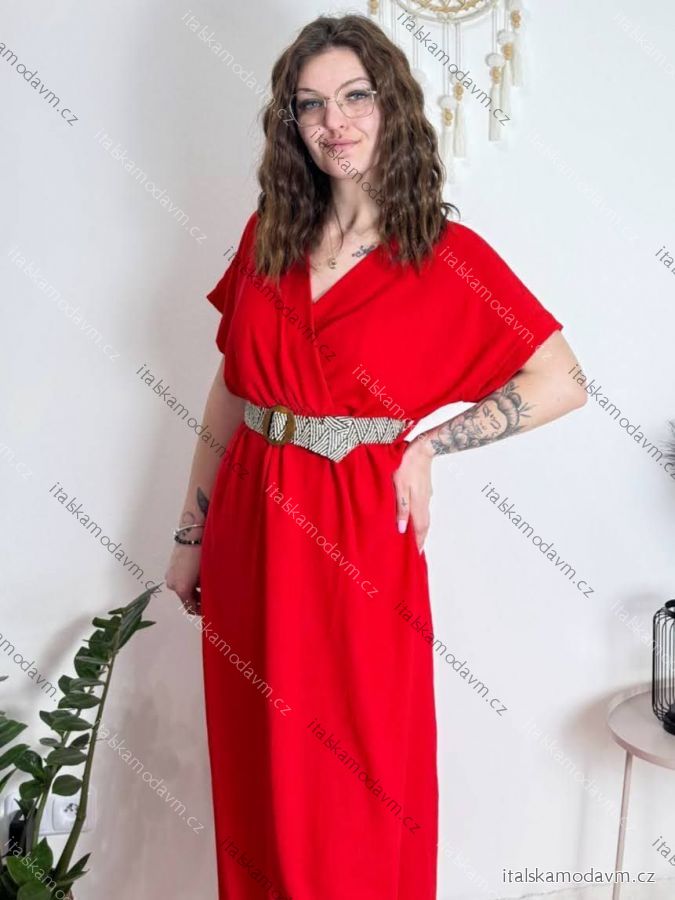Šaty dlouhé elegantní letní s páskem krátký rukáv dámské Luka (M/L/XL ONE SIZE) ITALSKÁ MÓDA IMD25084