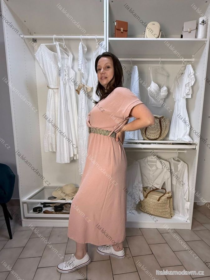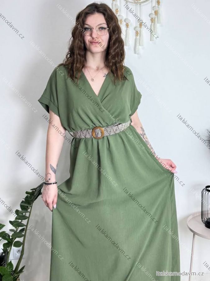 ZBOŽÍ (21936) > Šaty dlouhé elegantní letní s páskem krátký rukáv dámské Luka (M/L/XL ONE SIZE) ITALSKÁ MÓDA IMD25084