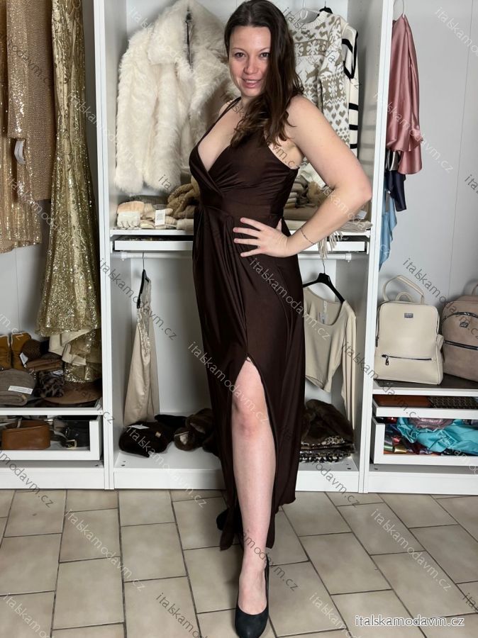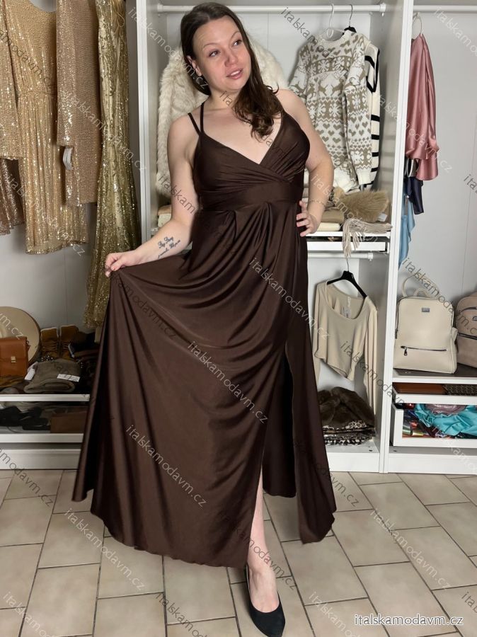 ZBOŽÍ (22043) > Šaty dlouhé elegantní na ramínka dámské AMANDA (S/M/L ONE SIZE) ITALSKá MODA IM323022/DUR hnědá, S/M/L