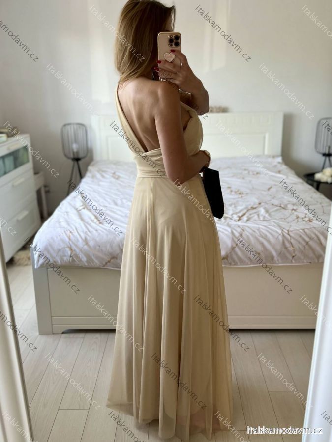 Šaty dlouhé elegantní společenské bez rukávu dámské (S/M ONE SIZE) ITALSKÁ MÓDA IMPSH223623/DUR béžová S/M