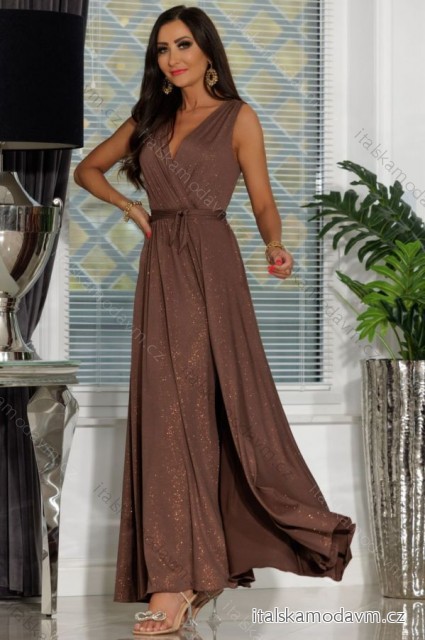 ZBOŽÍ (23737) > Oblečení dámské (18907) > Šaty (10183) > Šaty bez rukávu (1726) > Šaty dlouhé elegantní třpytivé bez rukávu nadrozměr dámské (36-44) POLSKÁ MÓDA PMLEL24SALMA11 hnědá čokoládová 40