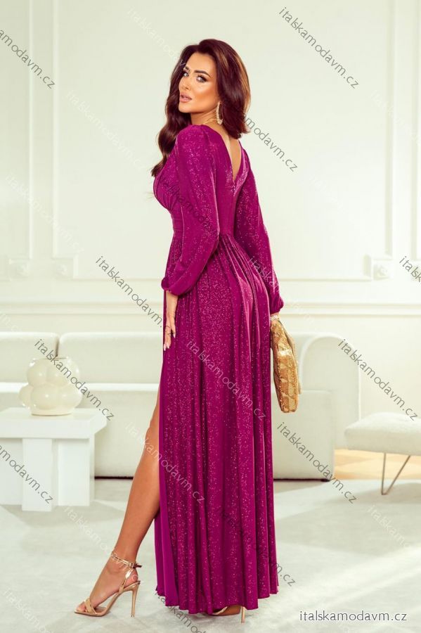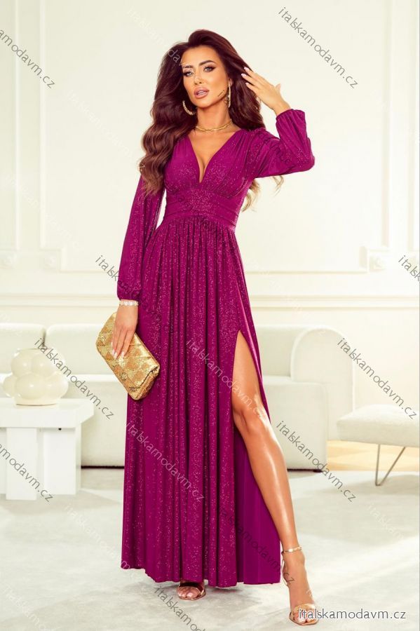 Šaty dlouhé elegantní třpytivé dlouhý rukáv dámské nadrozměr (34-50) POLSKÁ MÓDA PMLWD24RAMONA/DR fialová 44