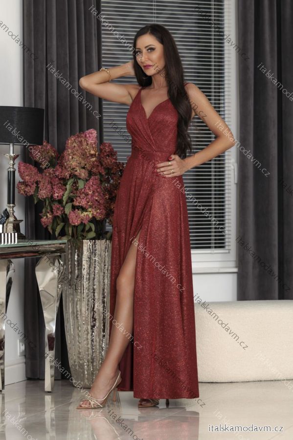 Šaty dlouhé elegantní třpytivé na ramínka dámské (32-42) POLSKÁ MÓDA PMLEL250MARINA3 tmavo červená 40
