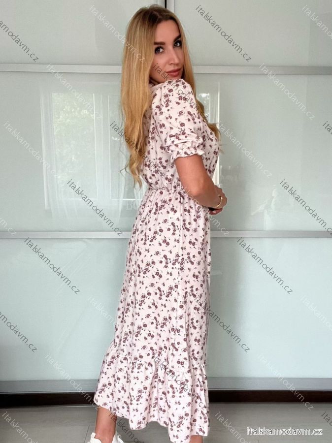 Šaty dlouhé košilové krátký rukáv dámské LIVIA (S/M/L ONE SIZE) ITALSKÁ MÓDA IMWGB24042S-7/DUR - béžová - S/M/L