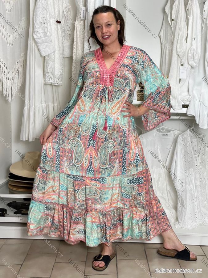 ZBOŽÍ (22168) > Šaty dlouhé letní dlouhý rukáv dámské (M/L/XL ONE SIZE) INDICKÁ MÓDA IMWKA25CE-301-7/DU M/L/XL světle zelená