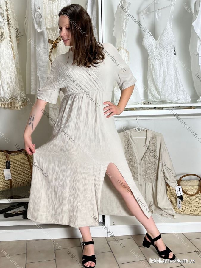ZBOŽÍ (23054) > Šaty dlouhé letní krátký rukáv mušelín dámské GABI (S/M/L ONE SIZE) ITALSKÁ MÓDA IM425445/DUR S/M/L béžová