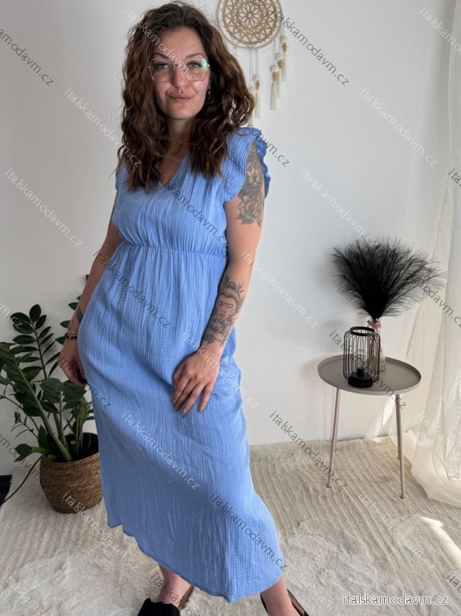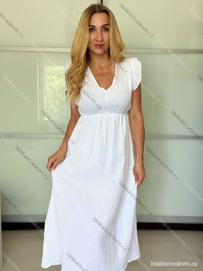 Šaty dlouhé letní mušelín krátký rukáv dámské JULI (S/M/L ONE SIZE) ITALSKÁ MÓDA IMWB25894/DUR černá S/M/L