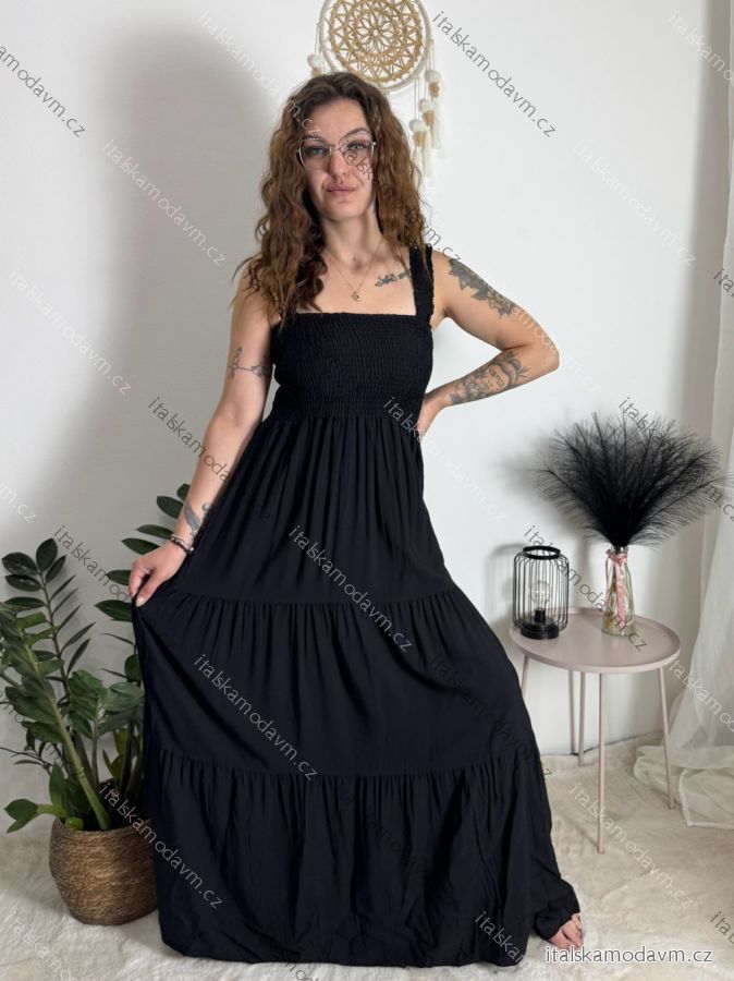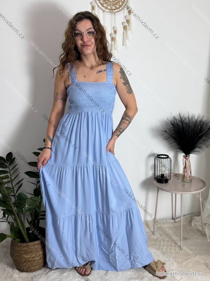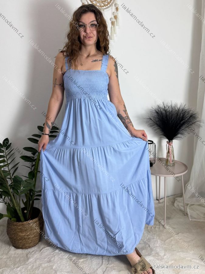 Šaty dlouhé letní na ramínka dámské nadrozměr LEONA (M/L - XL/XXL ONE SIZE) IMWGD25V063/DR světle modrá XL/2XL