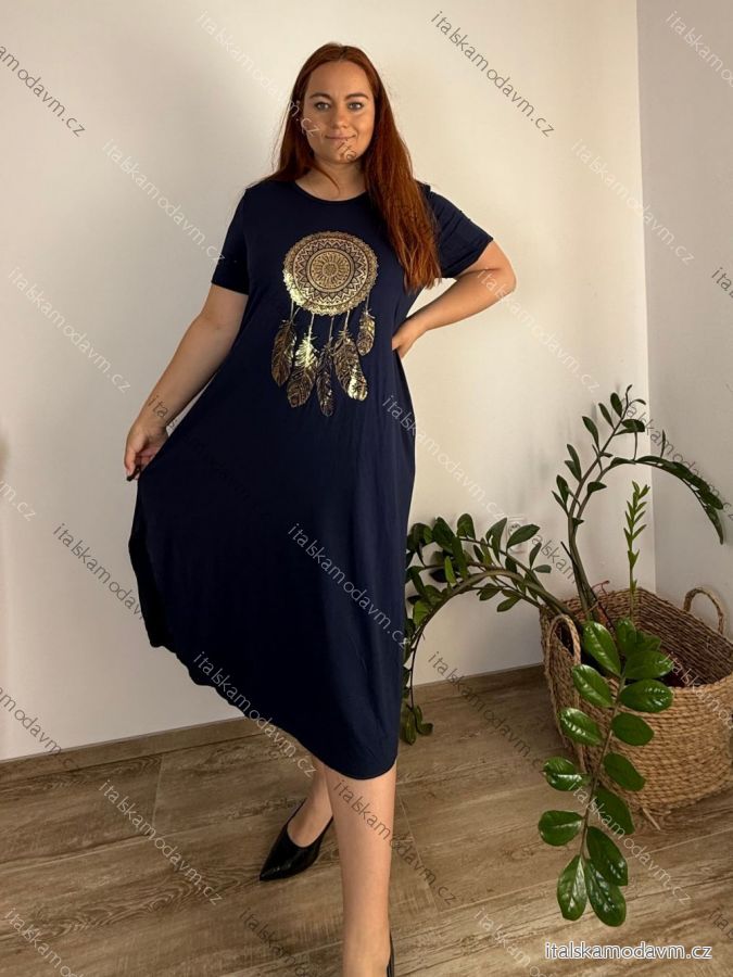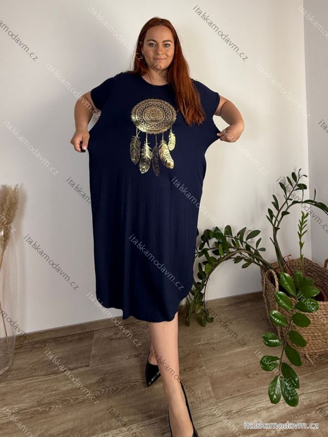 Šaty dlouhé oversize krátký rukáv dámské viskoza nadrozměr Lapač Snů (2XL/3XL/4XLONE SIZE) ITALSKÁ MÓDA MD22450/DUR tmavě modrá 2XL/3XL
