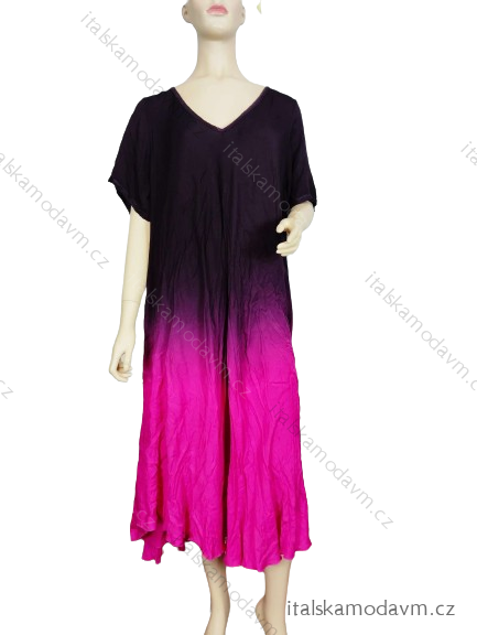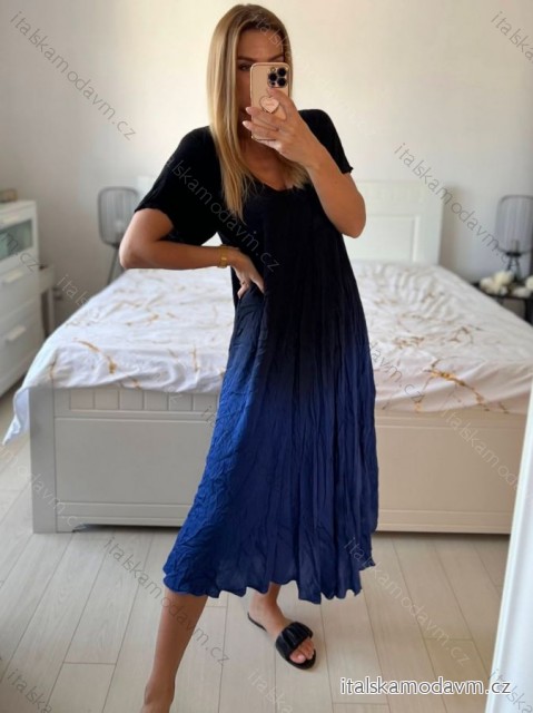 Šaty dlouhé oversize krátký rukáv dámské nadrozměr (42/44/46/48/50/5254/56/58 ONE SIZE) ITALSKÁ MÓDA IMWCA24087/DUR - modrá - 56/58