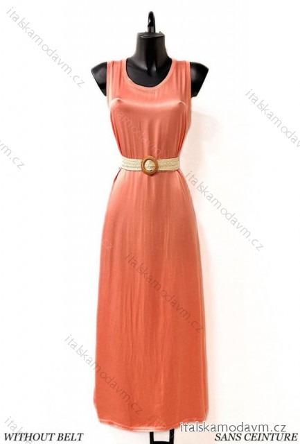 Šaty dlouhé saténové elegantní bez rukávu dámské (38/40 ONE SIZE) ITALSKÁ MÓDA IMPES24A00035 tmavě modrá 38/40