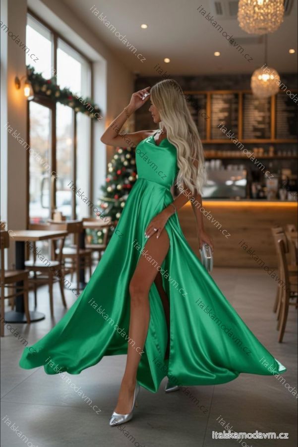 ZBOŽÍ (21836) > Šaty dlouhé saténové společenské na ramínka dámské (S/M/L ONE SIZE) ITALSKÁ MÓDA IMD23460