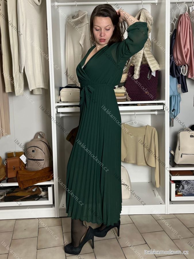 ZBOŽÍ (21611) > Šaty dlouhé skládané s páskem dlouhý rukáv dámské ZITA (S/M/L ONE SIZE) ITALSKÁ MÓDA IMWAX2510680/DUR S/M/L tmavě smaragdová