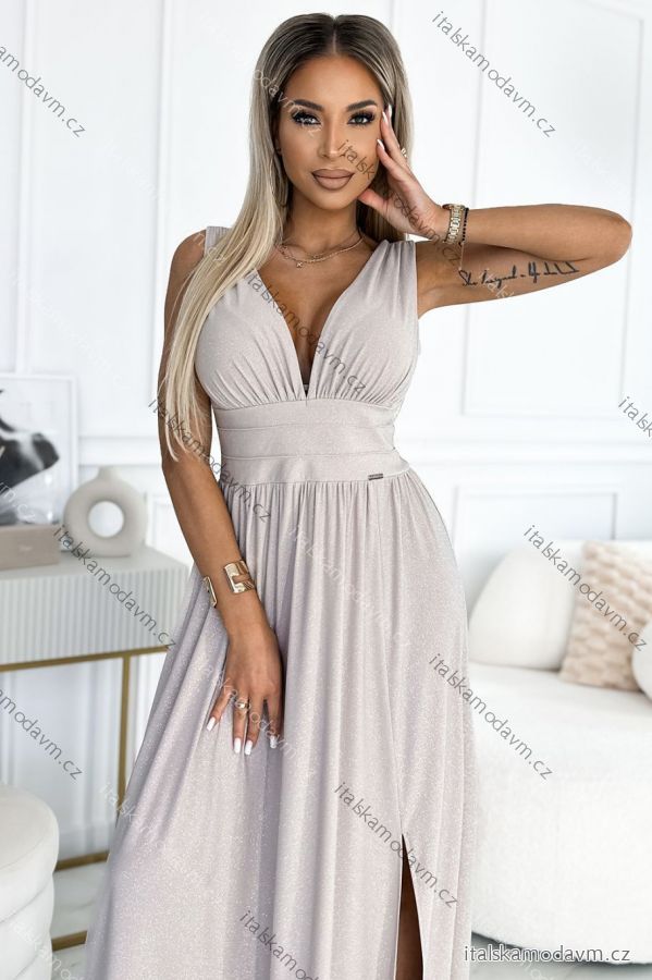 Šaty dlouhé společenské bez rukávu dámské SUSAN (L,XL) ITALSKÁ MÓDA NUM254902/DR L béžová