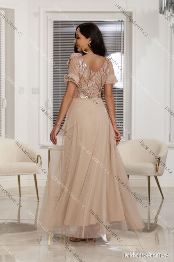 Šaty dlouhé společenské krajkové s filtry dlouhý rukáv dámské nadrozměr (36-50) POLSKÁ MÓDA PMLEL25STELLA béžová 36