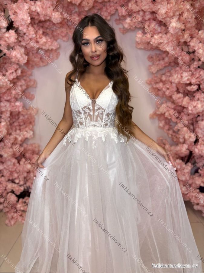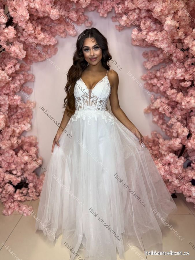 Šaty dlouhé společenské krajkové na ramínka dámské TIRAMISU (34-40) POLSKÁ MÓDA PMLPT26003