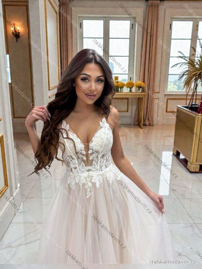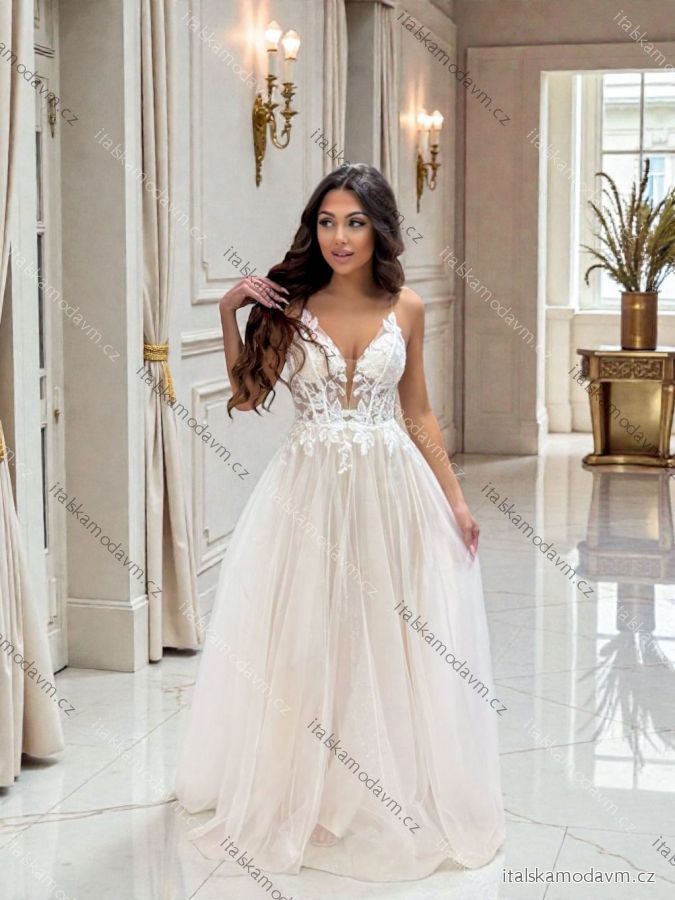 Šaty dlouhé společenské krajkové na ramínka dámské TIRAMISU (34-40) POLSKÁ MÓDA PMLPT26003-1