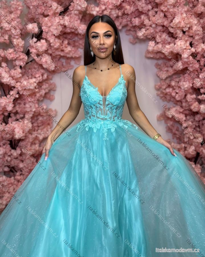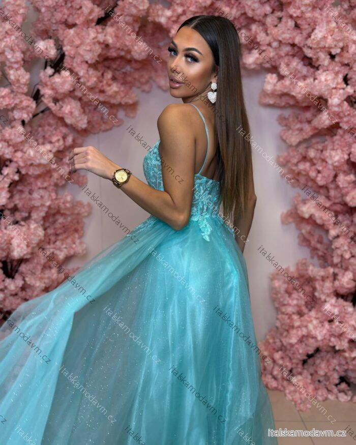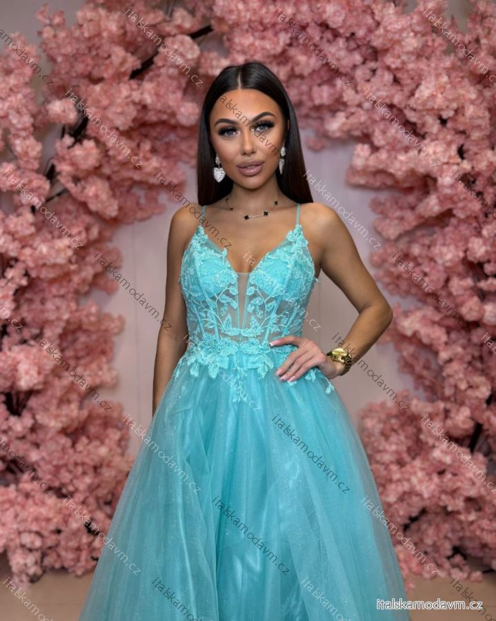 Šaty dlouhé společenské krajkové na ramínka dámské TIRAMISU (34-40) POLSKÁ MÓDA PMLPT26003-2