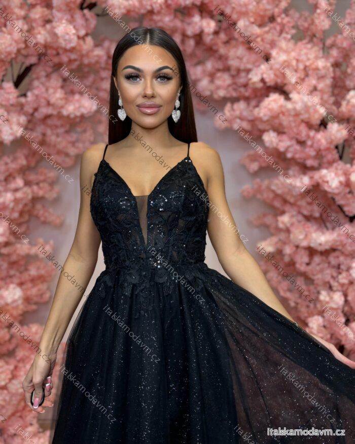 Šaty dlouhé společenské krajkové na ramínka dámské TIRAMISU (34-40) POLSKÁ MÓDA PMLPT26003-3