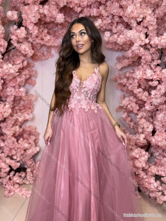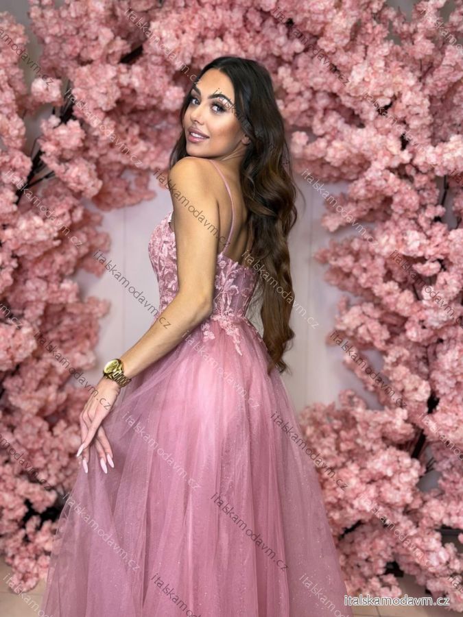 Šaty dlouhé společenské krajkové na ramínka dámské TIRAMISU (34-40) POLSKÁ MÓDA PMLPT26003-4