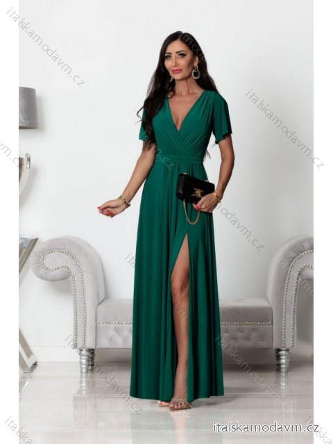 Šaty dlouhé společenské krátký rukáv dámské (S - 2XL) POLSKÁ MÓDA PMLEL24BELLA5 zelená M