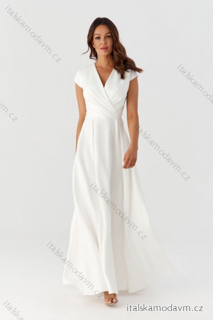 ZBOŽÍ (22167) > Šaty dlouhé společenské krátký rukáv dámské (36-56) POLSKÁ MÓDA PMLMR23AFRODYTA-2/DU bílá 50
