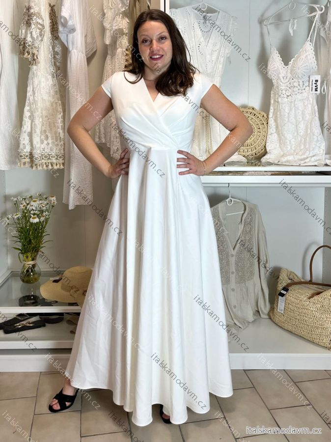 ZBOŽÍ (22070) > Šaty dlouhé společenské krátký rukáv dámské (36-56) POLSKÁ MÓDA PMLMR23AFRODYTA-2/DU bílá 58